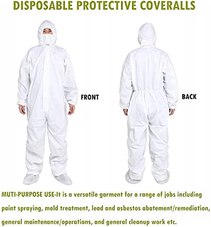 • ▷MUTI-PURPOSE USE-It is a versatile garment for a range of jobs including paint spraying, mold treatment, lead and asbestos abatement/remediation, general maintenance/operations, and general cleanup work etc.Not for chemical resistant.